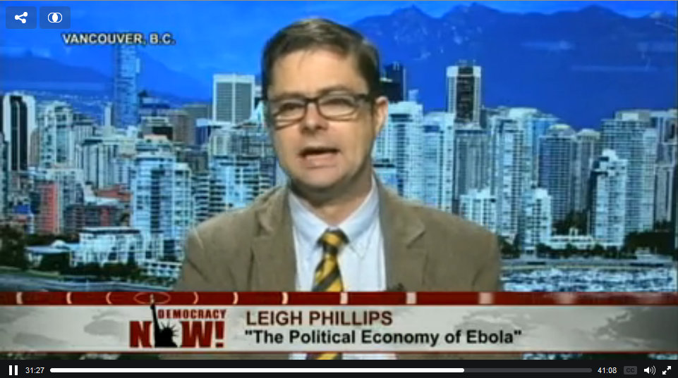 We look at the political and economic circumstances of the spread of Ebola with science writer Leigh Phillips, who calls for a socialization of pharmaceutical research and production. Phillips says that using revenues from profitable drugs to subsidize research for…