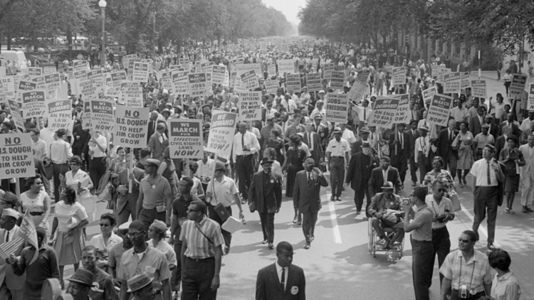 ‘Get Your Knee Off Our Necks’: On 57th Anniversary of Historic Civil Rights Rally, Tens of Thousands March on Washington