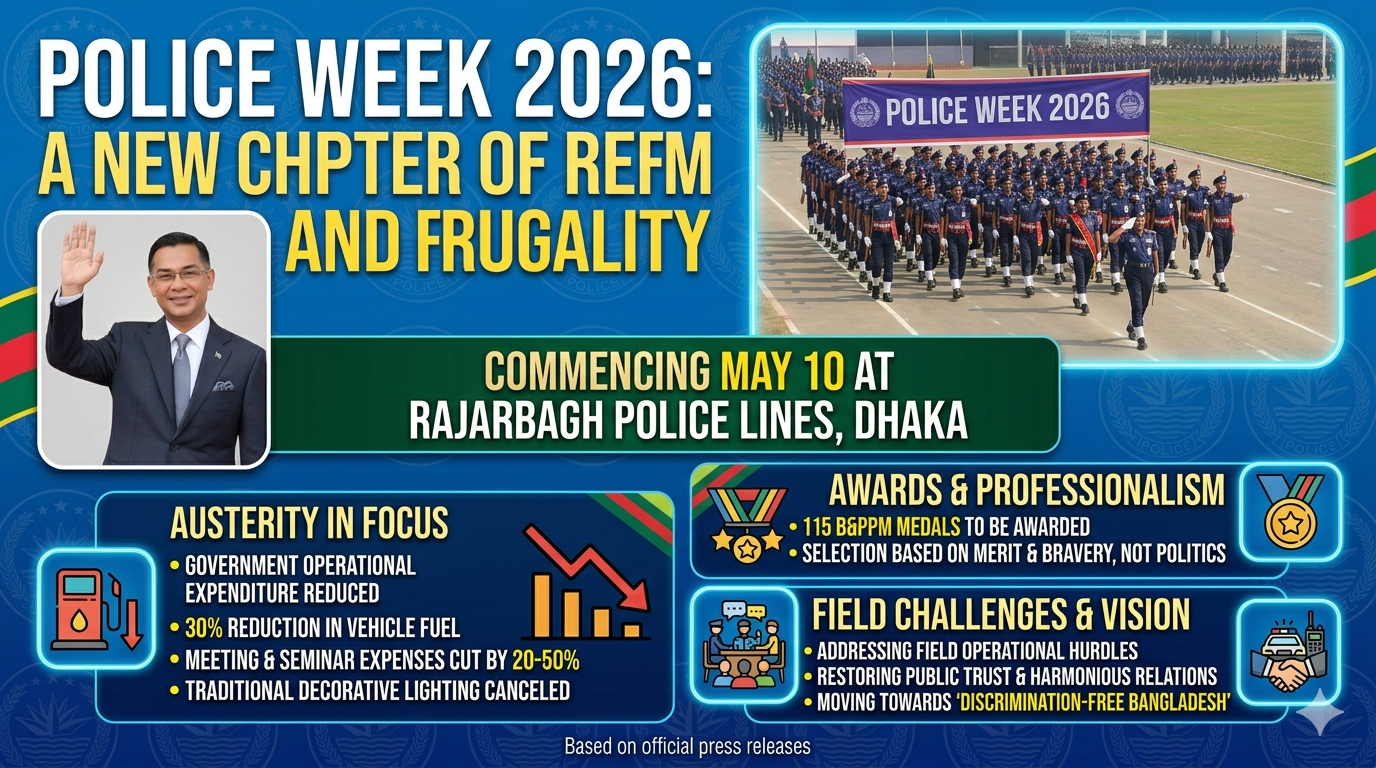 By Abu Hena Rasel (Dhaka Bureau) The largest annual event of the Bangladesh Police, ‘Police Week 2026,’ is set to commence on May 10. However, this year’s observance marks a significant departure from tradition. The event is being organized with…