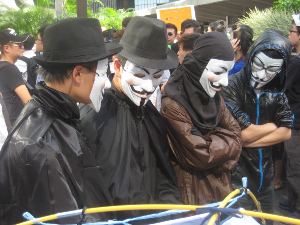 As a worldwide movement, Anonymous has rallied in support of the anti-secrecy website WikiLeaks and army soldier plus whistleblower Chelsea Manning. Also supporting the Arab Spring anti-dictatorship protests in the Middle East as well as the Occupy Wall Street movement, which started in New York City two years ago – though inspired by Tunisia – but has since spread across the world as a means of addressing the elitist ties between corporations, the military-industrial complex, arms suppliers, and fearful governments; in Hong Kong, the poverty gap and a truly democratic voting regime figure large.
