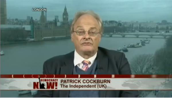 PATRICK COCKBURN: “…it is clearly a proxy war. I mean, this may have started off as a popular uprising in Syria, but by now it has four or five different conflicts wrapped into one, that—and you have an opposition, but an opposition which is fragmented and really proxies for foreign powers, notably Saudi Arabia, Qatar. Turkey plays a role. What has changed recently, since midsummer, is that Saudi Arabia is becoming the main financier for the rebel military groups inside Syria. Qatar is playing a lesser role. And the Saudis are trying to develop a Sunni Islamic force that is against the Assad government in Damascus, but is also against al-Qaeda. But this is, even so, very much a sectarian force, which is already being blamed for sectarian attacks on Christians and Druze and Alawites. There, then, of course, you also have the United States and Britain and France. A recent defector from the Free Syrian Army, who joined the al-Qaeda affiliate, Islamic State of Iraq and the Levant, said he was continually attending meetings—I don’t know—he didn’t say where, but probably in Turkey—in which always representatives of foreign intelligence services turned up, and at one moment while being presided over by the Saudi deputy defense minister.”