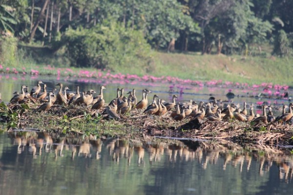The fort-like red coloured buildings, the evergreen trees, waterlily-decorated lakes, the calm and quiet environment of the Jahangirnagar University have made the campus really a heaven for birds which is now a central attraction for many people, specially for those who reside in the dusty brick lanes of the urban sprawl and city of Dhaka.