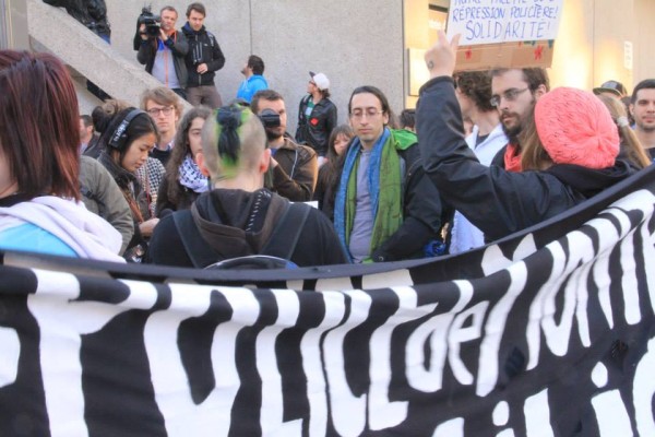 Montreal citizens were invited to gather near police headquarters to talk about police brutality yesterday – May 7, 2014. The event was organized by one of Quebec’s largest and more militant student federations, ASSE, and the Coalition Opposed to Police Brutality (COBP).