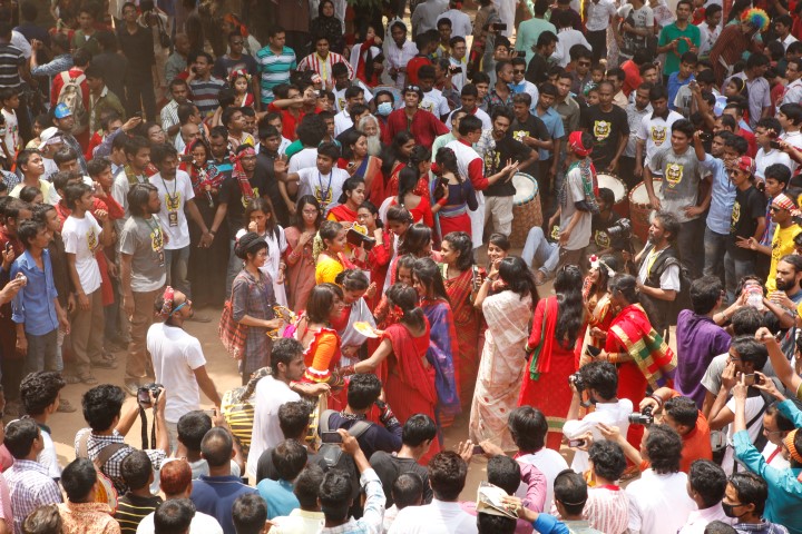 An integral part of the festivities is the Mongol Shobhajatra, a traditional colourful procession organised by the students of the Faculty of Fine Arts (Charukala) of Dhaka University. The procession has a different theme relevant to the country’s culture and politics every year. Different cultural organizations and bands also perform on this occasion and fairs celebrating Bangla culture are organized throughout the country. Other traditional events held to celebrate Poila Boishakh include bull racing in Munshiganj, wrestling in Chittagong, boat racing, cockfights, pigeon racing and more.