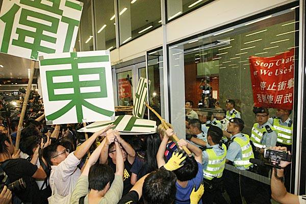 Apparently another type of violence was taking place inside at the Legco meeting. The committee chairman stopped the Legco members asking any questions – the were filibustering – in order to pass the meeting asap and have a done deal!