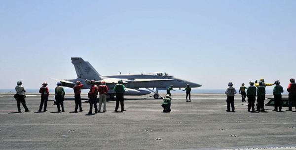 **Photo: An American F/A-18C Hornet aboard the USS George H.W. Bush prior to the launch of operations over Iraq | Author: U.S. Navy photo by Mass Communication Specialist 3rd Class Margaret Keith | Date: 7 August 2014 | Wikimedia Commons.