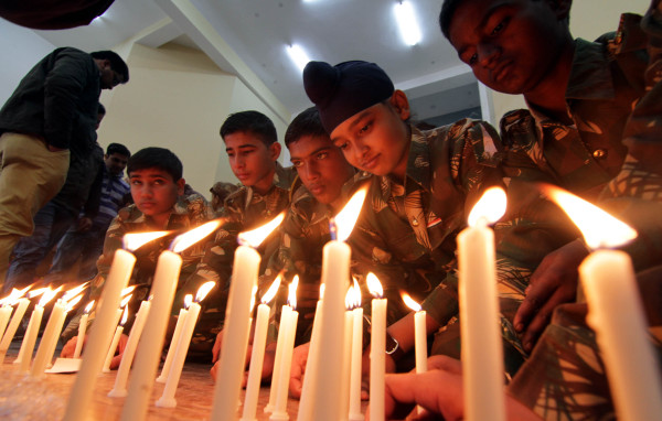 School children in Jammu (Kashmir) observe two-minutes of silence and light candles to pray for the victims who were killed in the attack at the army run school in Peshawar, Pakistan, during the school’s Annual Day – on Wednesday, 17 December, 2014.
