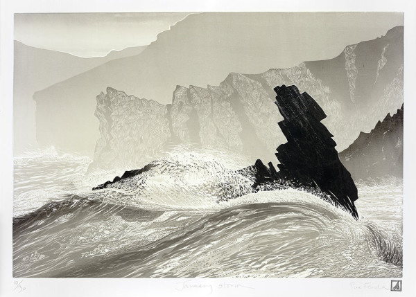 “Our ‘first phase’ is to make a body of work with stylistic and technical coherence”, states their introductory material. “To this end we are making four or five powerful large prints inspired by the extraordinary coast of North Devon. The innovative nature of our work makes it imperative that we have consistency in scale, in subject matter and in palette.”
