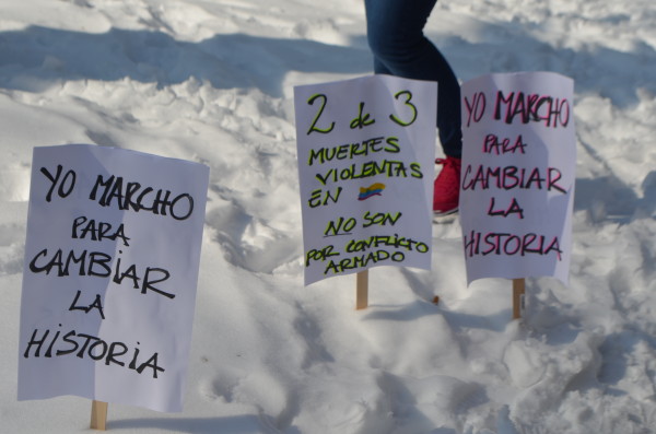 The March for Life calls to stop violence, the lost of lives in Colombia and to continue the peace process on a promise of a future without violence. It is a very opportune moment since there is now a peace negotiations discussion in Havana, Cuba between the FARC and the government, to end a 50 years armed conflict in Colombia . At the end of the mobilization at City Hall, Maria Fernanda Cepeda, read the declaration of Antanas Mockus