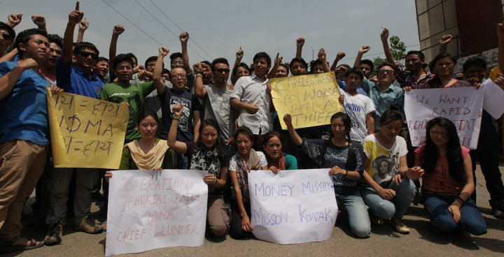 Protest by Ladakhi students over Phuktal artificial lake flooding in Zanskar and the failure of National Disaster Management Authority (NDMA) to take action, around 11:30am outside the press club, Jammu.