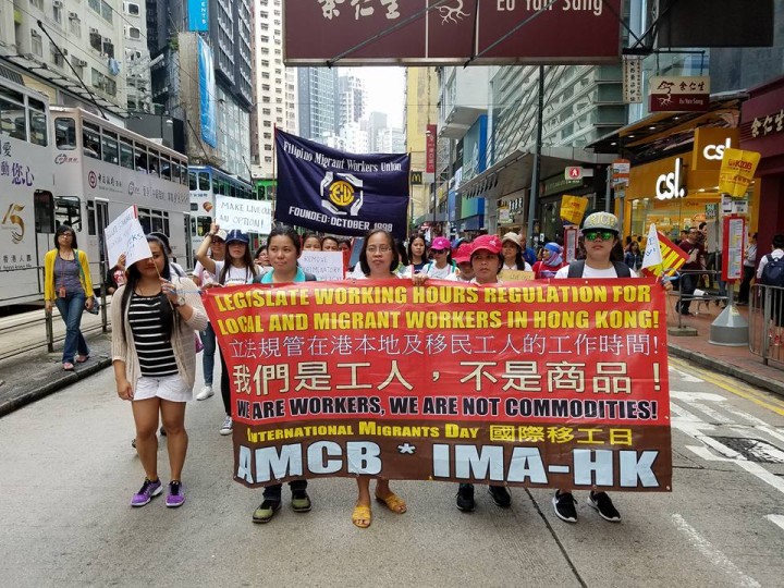 In Macau about 500 workers rallied at Tap Seac Square demanding 90 days of paid maternity leave and improvements to the overseas domestic helper employment system.