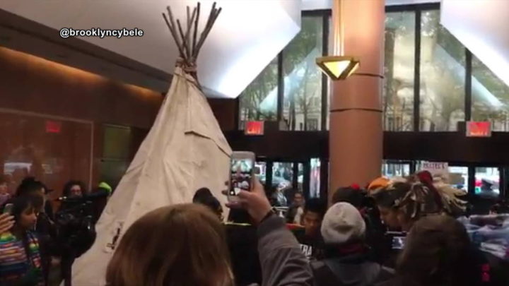 Thursday’s mass arrests came as Native American youth flooded the Hillary Clinton campaign headquarters in Brooklyn to demand Clinton oppose the Dakota Access pipeline. After Clinton campaign staffers declined to meet with the delegation, they attempted to present a letter to security guards. The protesters were later ordered by police to leave or face arrest.