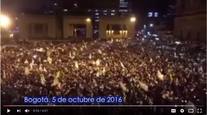 Weather Santo’s Prize will prove good or bad for the Peace process remains to be seen. But the most important omission, at least in the British Media has been about the general absence of reporting on the massive demos that students and other people are carrying out in the street of Bogota in support of the continuation of the agreements reached in La Havana. Here some links: