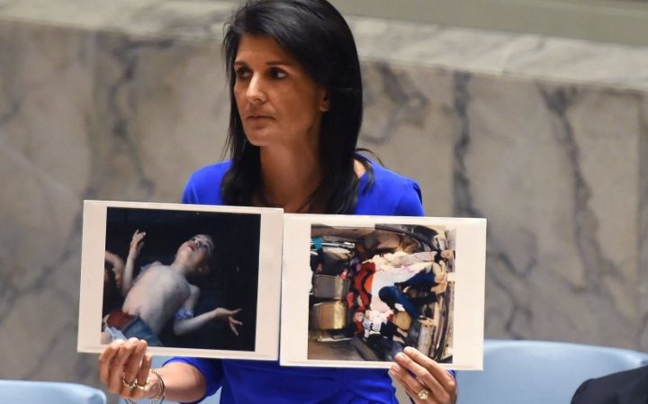 Nikki Haley, U.S. Ambassador to the UN, is justifiably outraged by the slaughter of innocents in the Syrian town of Khan Sheikhoun where rebel forces are lodged.At least eighty-six people, including women and children, died from exposure to chemical weapons. Doctors Without Borders and the World Health Organization, after examining the bodies of victims, believe their deaths were caused by a possible nerve agent such as sarin. Western states, in particular, the U.S., France, and Britain, blame the government of Syrian President Bashar al-Assad for the attack, which left hundreds in need of emergency care.