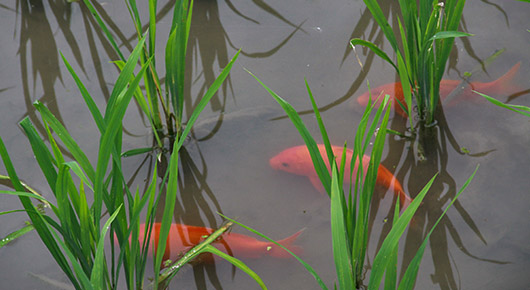 In some Chinese areas, farmers combine rice farming with aquaculture, quite literally growing fish in their flooded paddy fields. The rice paddies offer protection and organic food for the fish, while the fish soften the soil and provide nutrients and oxygen for the rice crop, the UN specialized body tells in its report: Growing rice and fish – together a Chinese tradition for 1000 years.