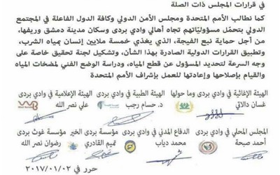 VOLTAIRE NETWORK | 7 JANUARY 2017 The Jihadists, who since 24 December 2016 have been polluting the sources of Barada — the river which provides the water supply for the inhabitants (now totalling more than 7 million) of Damascus and…