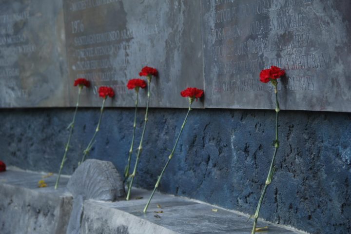 Their relatives are here and they carry red carnations, we are emotional because as it says at the entrance of this place of memory – forgetfulness is full of memory – and, as the survivors of this centre of torture and death, those who passed through this ancestral home at the foot of the Andes Mountains, we remember that in the darkness of terror we felt the scent of roses.