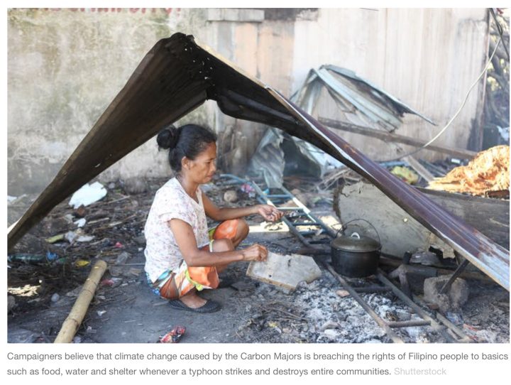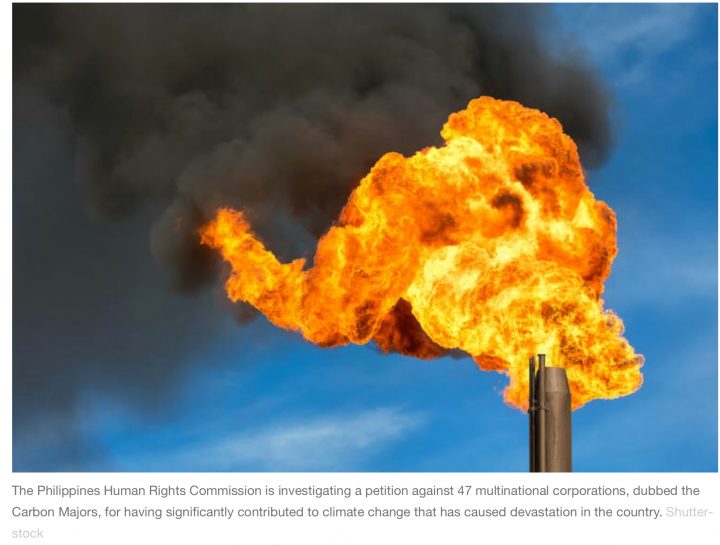 The group asked the Philippines Human Rights Commission to investigate the Carbon Majors’ responsibility for alleged breaches of Filipinos’ human rights to “life, health, food, water, sanitation, adequate housing and self determination” that are associated with climate change.