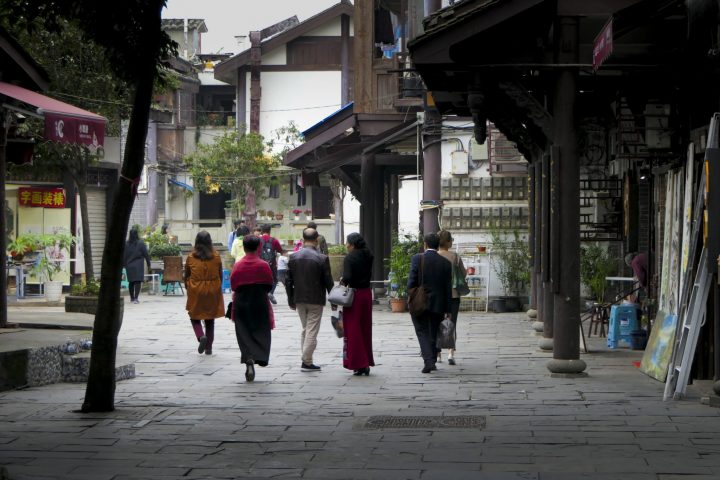 The old houses still stand and the city’s dockside scenes have changed little over the years, built during the time when many masterpieces of Chinese architecture were created. Made of bamboo and timber, blue bricks and pillars set off the white walls that contrast with vermilion doors and lattice windows. Lanterns hang on the gates, giving them that authentic feel. The waters of the Jia Ling River flow in front of the village and have been its lifeblood for as long as anyone can remember.
