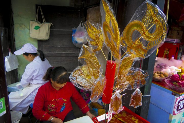 Traditional arts and crafts a-plenty. As you explore the side streets of the main street, local artists can be seen working at their craft. Shu embroidery, Chinese silk painting and calligraphy, bonsai, jewelry and all the produce of Chinese artisans can be found to take home as souvenirs and keepsakes.