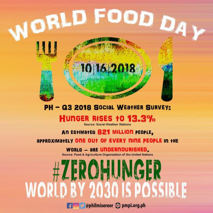 We, from the Philippine Misereor Partnership Inc., a network of civil society organizations, rights groups, peace and faith-based institutions hope that the 2018 World Food Day celebration manifest the very essence of it, particularly to effect change to the lives of Filipino people living in extreme poverty and hunger.
