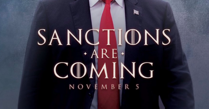 Treating the welfare of the Iranians people like a TV show, Donald Trump used a meme from The Game of Thrones—an arrogant, stylized photo of himself with the tagline: “Sanctions Are Coming November 5”—to announce the new round of crippling sanctions targeting Iran’s oil exports, banks and shipping.