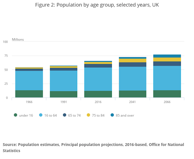 But over and above this, the major contributing factor to the current labour crisis is often that of the ageing population. Although over 65-year-olds currently make up only 18% of the population, the UK’s Office of National Statistics predicts that, much like Japan now, by 2066 at least a quarter of the UK population will be 65 or over, with more than five million of those being over 85.