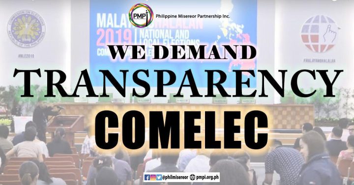 We, from the Philippine Misereor Partnership, Inc. (PMPI), a network of civil society organizations, rights groups, peace and faith-based institutions joins other civil society and church groups to demand accountability and transparency from the Commission on Election (Comelec).