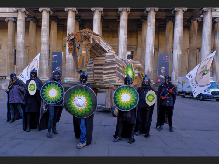 “The Troy exhibition has inspired us to create this magnificent beast, because the Trojan horse is the perfect metaphor for BP sponsorship,” said Helen Glynn, an activist with the theatrical protest group BP or not BP?. “On its surface the sponsorship looks like a generous gift, but inside lurks death and destruction.”… “The protest is the latest move in activists’ campaign to end fossil fuel sponsorship of the UK’s leading cultural institutions. In October, the Royal Shakespeare Company ditched its sponsorship deal with BP, after a campaign from artists, environmentalists and members of the public.”