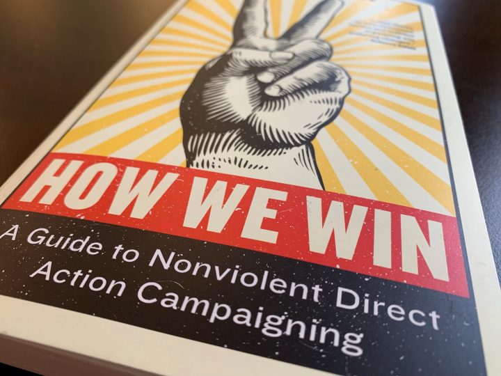 George Lakey’s new book is called How We Win: A Guide to Nonviolent Direct Action Campaigning. On its cover is a drawing of a hand holding up two fingers in what is more often considered a peace sign than a victory sign, but I suppose it is meant as both.