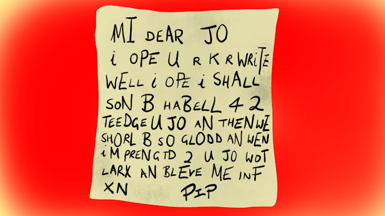 Great Expectations includes an episode that looks back to the very start of the narrator Pip’s literacy, in which he composes his first, orthographically unorthodox letter: