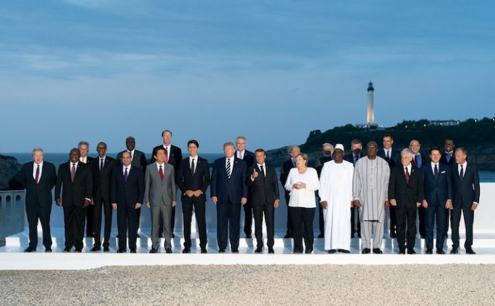 Photo: President Donald J. Trump joins the G7 Leadership and Extended G7 members as they pose for the “family photo” at the G7 Extended Partners Program Sunday evening, Aug. 25, 2019, at the Hotel du Palais Biarritz, site of the G7 Summit in Biarritz, France. (Official White House Photo by Andrea Hanks)