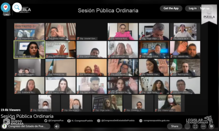 On November 3, Puebla became the 19th Mexican state to recognize same-sex marriage in the country. 31 congresspeople out of 39 raised their hand to pass the legislation under the gaze of nearly 20,000 viewers on Facebook Live and Periscope. The meeting was held virtually to respect social distancing measures.