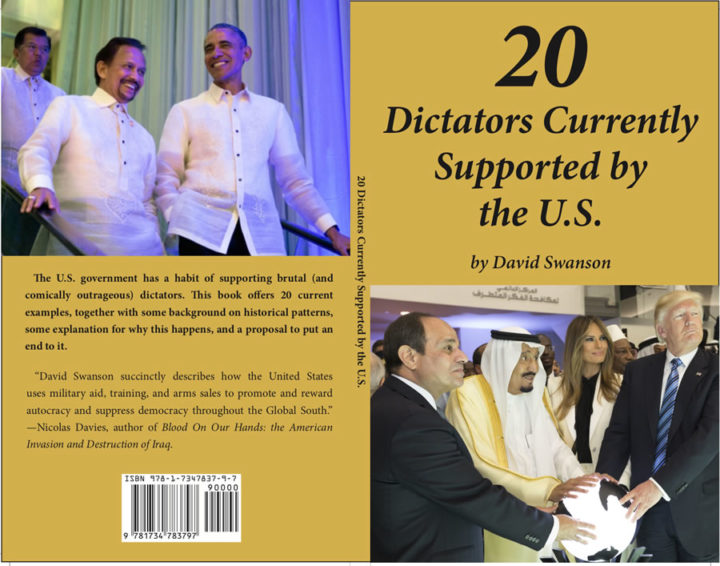 Now let’s take one more run through the list of 50 oppressive governments, because in addition to selling them weapons and training them, the U.S. government also provides funding directly to foreign militaries. Of the 50 oppressive governments, as listed by Freedom House, 32 receive “foreign military financing” or other funding for military activities from the U.S. government, with — it’s extremely safe to say — less outrage in the U.S. media or from U.S. tax payers than we hear over providing food to people in the United States who are hungry. I base this list on the United States Agency for International Development (USAID)’s Congressional Budget Justification: FOREIGN ASSISTANCE: SUMMARY TABLES: Fiscal Year 2017, and Congressional Budget Justification: FOREIGN ASSISTANCE: SUPPLEMENTARY TABLES: Fiscal Year 2018. Here are the 33: Afghanistan, Algeria, Angola, Azerbaijan, Bahrain, Belarus, Cambodia, Central African Republic, China, Democratic Republic of Congo (Kinshasa), Djibouti, Egypt, Eswatini (formerly Swaziland), Ethiopia, Iraq, Kazakhstan, Laos, Libya, Mauritania, Oman, Saudi Arabia, Somalia, South Sudan, Sudan, Syria, Tajikistan, Thailand, Turkey, Turkmenistan, Uganda, Uzbekistan, Vietnam, Yemen.
