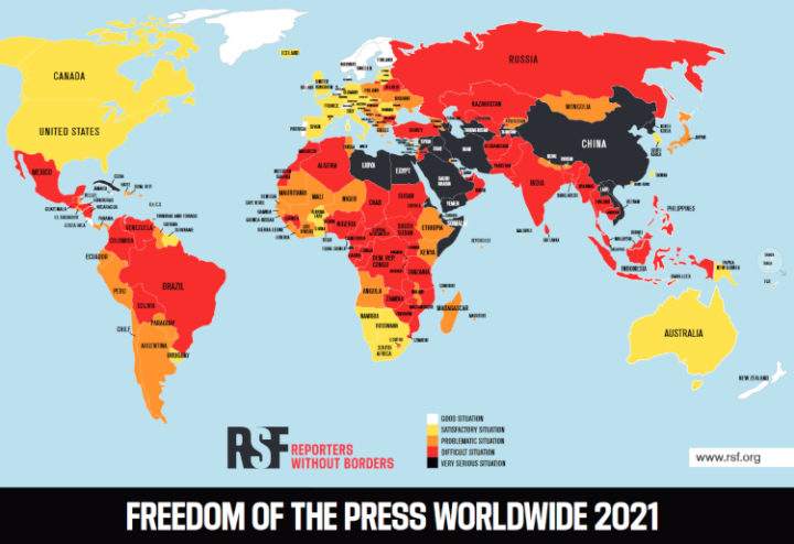 The World Press Freedom Index 2021 published by Reporters without Borders (RSF) shows that journalism, “the basic vaccine against misinformation”, is being blocked completely or in part in 73% of the 180 countries which the organization monitors.