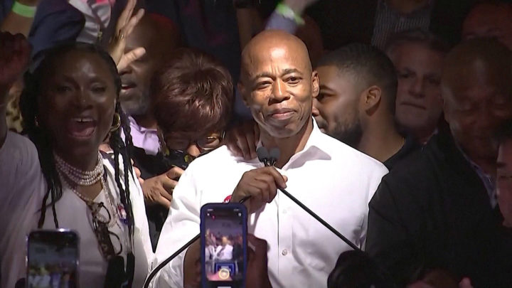 AMY GOODMAN: New Yorkers voted in its highly anticipated primary election Tuesday. In the heated mayoral race, Brooklyn borough president, former New York police officer Eric Adams is leading with over 31% of the vote, but it will likely take several weeks to announce a winner with the new ranked-choice voting system. Civil rights attorney Maya Wiley is currently in second place with 22% of the vote, followed closely by former Sanitation Commissioner Kathryn Garcia. 2020 presidential candidate Andrew Yang has conceded after receiving less than 12% of the tallied vote.