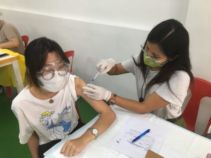 June 8, 2021, Pressenza photographer accompanied his children to get their shots at the La Salle high school in Ayala Alabang Muntinlupa City vaccination center and took some photos: