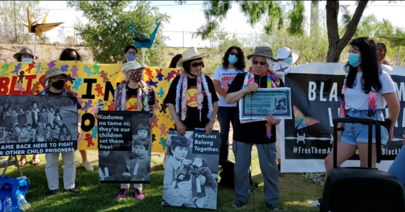Chizu Omori, 91-year-old Japanese American survivor of U.S. concentration camps and member of Tsuru For Solidarity: “I spent three and a half years of my childhood in a U.S. concentration camp during WWII and know how the violence of incarceration and family separation leads to lasting trauma, heartache, and destruction of community. We won’t remain silent as the U.S. government repeats this shameful history by using Fort Bliss – a former WWII camp for Japanese Americans – to inflict harm on immigrant communities. Enough is enough. These sites must be shut down, not renamed and recycled.”