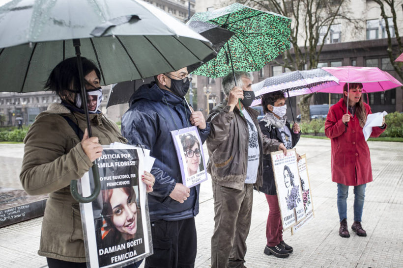 On this occasion there were no chairs or microphones for them to tell the state of their daughters’ cases due to the sustained rain. The mother of Camila Flores – 20 years old, murdered nine months ago in Santa Fe -, Susana and Daniel, the mother and father of Cecilia Basaldúa – the 35-year-old murdered in Capilla del Monte, Córdoba, whose body appeared on 25 April 2020 – and Alfredo, the father of Carla Soggiu, who appeared floating in the Riachuelo, four days after she activated twice the anti-panic button she had because her ex-husband had beaten and raped her.