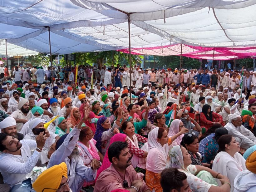 Karnal farmers, led by SKM are sitting on a day-night dharna demanding suspension of SDM Ayush Sinha, filing of FIR under section 302 against him and compensation to the families attacked by the police.