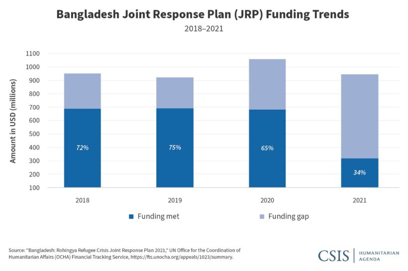 As one crisis competes with another, the newly emerged crisis usually dissipates the global concentration with respect to fund and focus towards existing ones, thereby worsening the former. Donors’ unwillingness to open purses as much as the crisis demands may further intensify the crisis. The foreign aid for Rohingyas has started declining after the onset of economic fallout triggered by covid-19. Moreover, the Taliban’s takeover in Afghanistan had created a new humanitarian crisis by displacing millions of Afghans. This crisis has resulted in the significant slashing of foreign donations to Rohingyas by shifting the spotlight the on ongoing Afghan crisis.