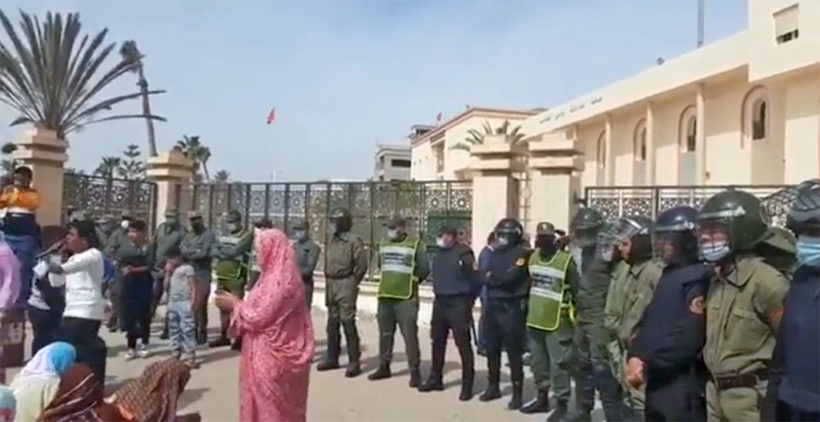 The protesters demanded justice for Lahbib and the circumstances of his disappearance. They called for an end to police corruption. They chanted slogans about Lahbib’s disappearance “rest in peace, we will continue the struggle” and also political slogans calling on the occupying authorities to stop the crime of colonisation and asking the Saharawi people for more unity and cohesion to face what they called “slow genocide”. “One, one, one, one, the Saharawi people united”.