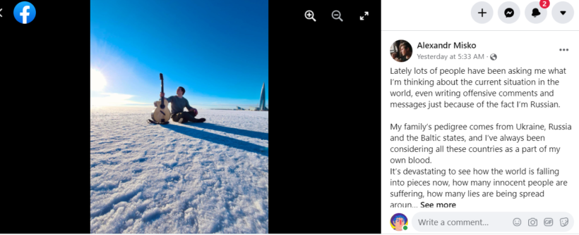 I opened my Facebook and saw a post written by Alexandr Misko, which reads: