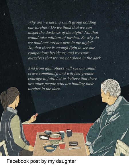 I can’t recall exactly what I said. My daughter posted this summary of what I told her on Facebook, a collaborative poster by her – Ayen dela Torre and her artist friend Rachel Halili: