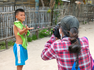 GKI cultural mapper Katrina Bayaban takes an image of the boy and his traditional trompo (spinning top). Photo credit: Genevieve B. Kupang