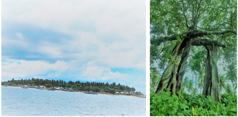 L: Guinlutangan Island surrounded by the Asid Gulf. Upper R: Seaweed farming. Kappaphycus is one of the century-old important aquaculture commodities. Photo credits: Katrina Bayaban.