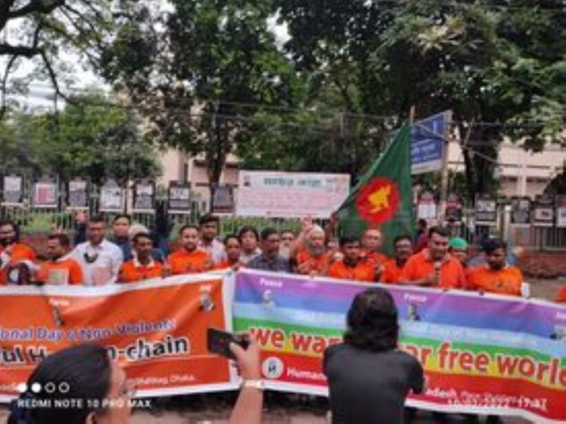 The Humanist Society of Bangladesh held a human chain program in Dhaka calling for an end to ethnic riots and deadly wars in the world.