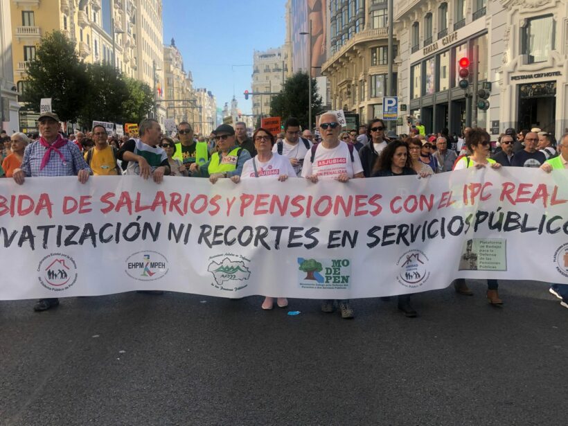Collectives from all parts of Spain met in Madrid on 15 October in defence of public pensions and their revaluation, for the elimination of the gender gap in pensions; in favour of a rise in salaries based on the real CPI and against the privatisation of Social Security, as well as the auditing of its accounts.