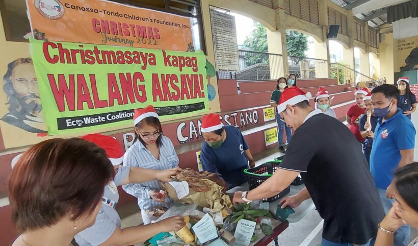 At an event held yesterday at the San Pablo Apostol Parish in Tondo, Manila, the EcoWaste Coalition partnered with the Canossa – Tondo Children’s Foundation, Inc. to promote practical, creative and eco-friendly ideas to prevent and reduce the massive holiday trash (or “holitrash”) associated with the joyful celebration of Christmas.