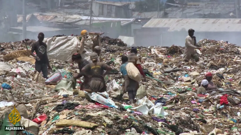 Collecting plastics at a Nairobi rubbish dump (Image by Aljazeera, video capture)